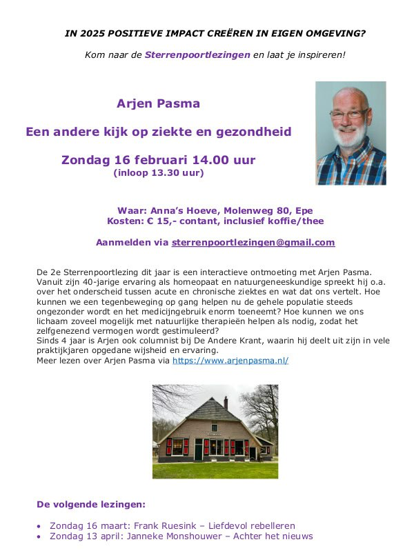 worden er in de STERRENPOORT bijeenkomsten en lezingen verzorgd voor en met mensen die een positieve bijdrage willen leveren aan een toekomst waar ruimte is voor autonomie en creativiteit.